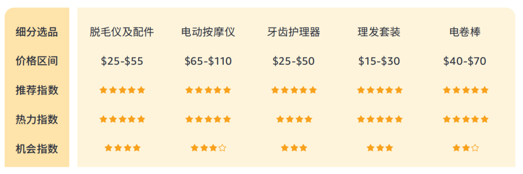 电动按摩仪:主要购买颈部和腰部按摩垫、注重性价比、附加的热敷功能会增加购买欲望。