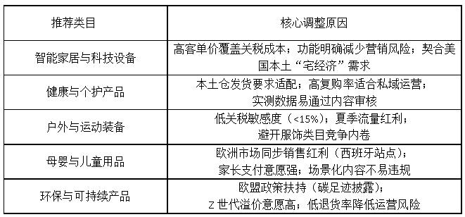 避开高关税敏感品类,转向高溢价商品,以下表格是一些推荐选择的品类: