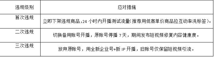 首次违规降权50%,二次违规禁止直播7天,三次违规封店。