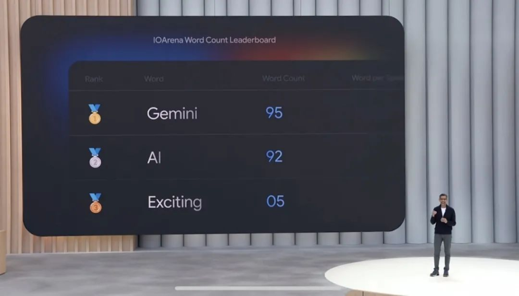 时长不到2小时的主题演讲上,谷歌CEO桑达尔·皮查伊携一众谷歌高管总共提到95次“Gemini”、92次“AI”。