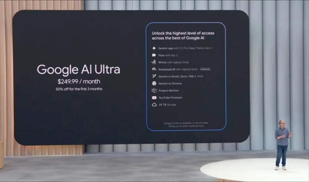 谷歌还推出全新Gemini订阅计划:AI Pro用户月付19.99美元(折合人民币约144元),可使用Veo 2、Gemini 2.5 Pro等入门级产品;AI Ultra用户月付249.99美元(折合人民币约1804元),可拥有Veo 3的无限访问权限、使用Gemini 2.5 Pro深度思考模式等。