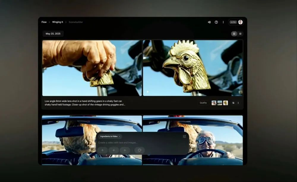 谷歌为Veo打造了配套的AI电影制作工具Flow,这一工具集成了Veo、Imagen和Gemini三款模型,可用于电影片段、场景和故事的创作。