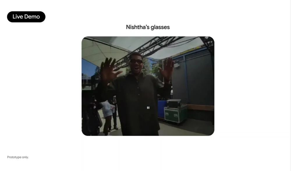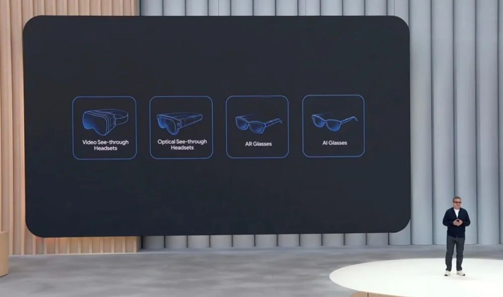 大会尾声,谷歌还现场演示了重量级安卓XR智能眼镜。