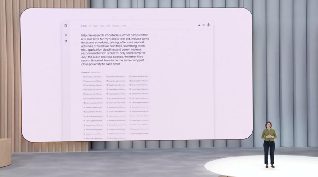 在个性化搜索能力方面,AI Mode允许用户引入更多偏好信息,帮助用户预定座位、进行所在地活动推荐等。对于用户需要获得更为详尽答案的问题,AI Mode能代表用户发起数十次甚至数百次搜索,几分钟内生成一份专业级报告。