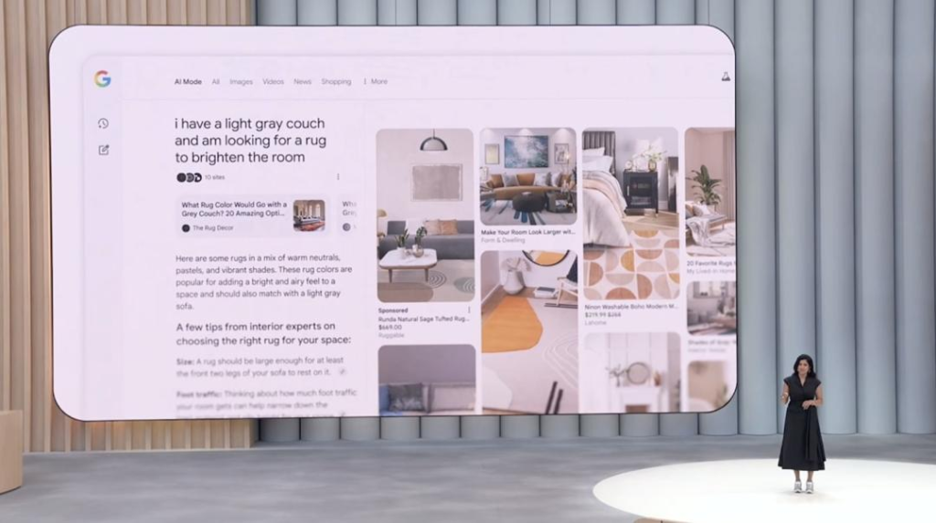 AI Mode还重塑了用户的购物体验,帮助用户定制浏览界面、虚拟试穿以及结账。