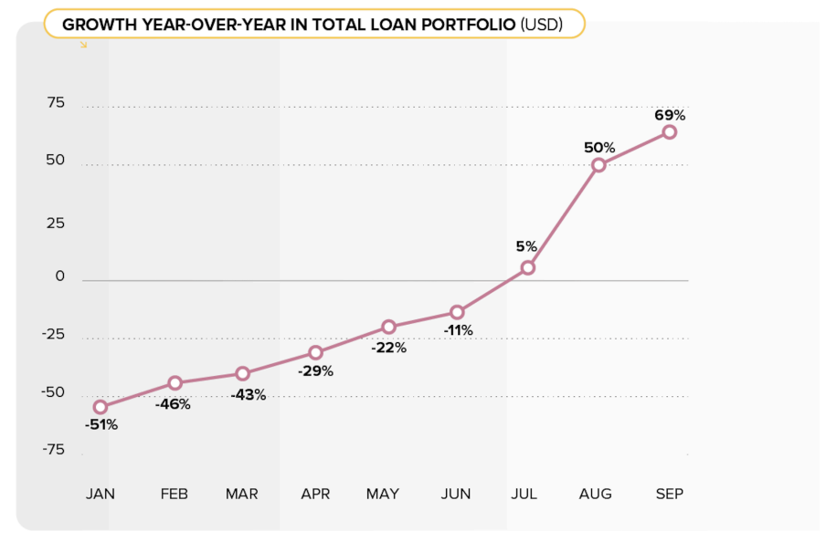 以美元为衡量单位,包括消费融资及为Mercado Pago和Mercado Libre卖家提供的营运资金在内的信贷业务组合来看,2024年9月份,美客多阿根廷站点的信贷业务组合同比增长69%。