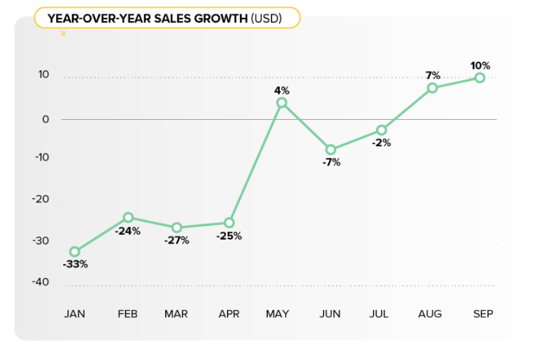 2024年1月-4月份,美客多阿根廷站点出现消费下滑后,自5月起消费已稳步复苏,这一点从平台上销售产品的增长趋势,与以美元计算的总交易额中均可见一斑。