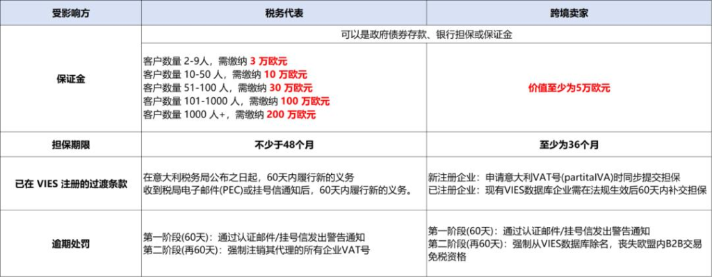 ●非欧盟企业(卖家)通过税务代表注册的意大利VIES税号,如果想要保留,就必须在2025年6月14日之前缴纳5万欧元的担保金!(有60天宽限期,可延长到8月份)