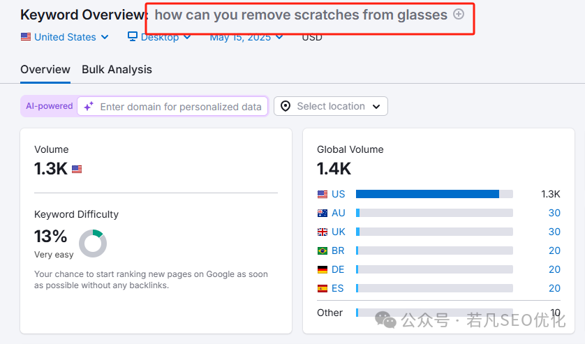 如果我们直接使用AI glasses关键词来拟定话题,那可能出排名的时间需要非常久。