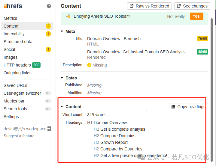比如使用Ahrefs或者SEOquake工具,就能看到整篇文章完整的大纲,不需要一个一个去翻。