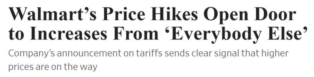 5月15日,沃尔玛2025年一季度财报显示,该季度净利润为44.9亿美元,同比减少超过12%。同时沃尔玛首次执行官向市场发出了涨价预警:公司无法消化关税带来的所有压力,预计价格上涨即将来袭,并波及货架上的所有商品。此前在美国关税尚未下调时,沃尔玛就曾通知部分中国供应商恢复发货,并保证关税成本由其承担。