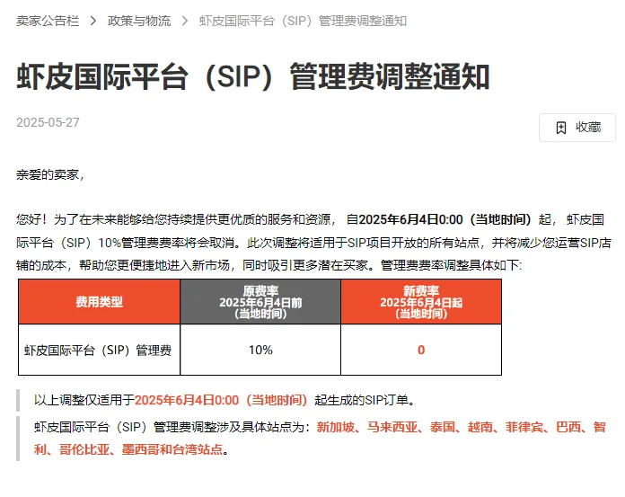 NIUNIUCard获悉,2025年6月4日起,Shopee国际平台(SIP)“一店通”模式正式取消10%管理费!新加坡、马来西亚、泰国、越南、菲律宾、巴西、墨西哥、哥伦比亚、智利及中国台湾等十大站点全面生效,跨境卖家将迎来“零门槛”出海新纪元。这一政策背后,是Shopee在亚马逊、TikTok Shop围剿下的突围之战,更是中小卖家抢占东南亚及拉美10亿人口市场的黄金窗口期。
