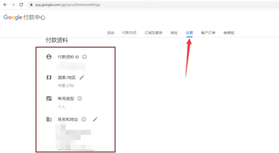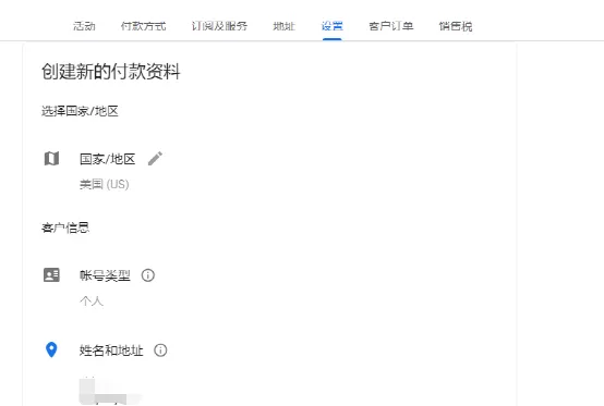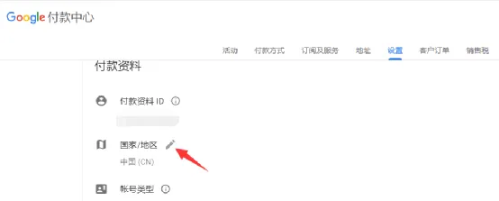 还是进入pay.google.com,在国家/地区后面有一个编辑按钮,我们进入这里进行修改。这里会有提示,当搬到新的国家/地区时,需要创建新的付款资料。