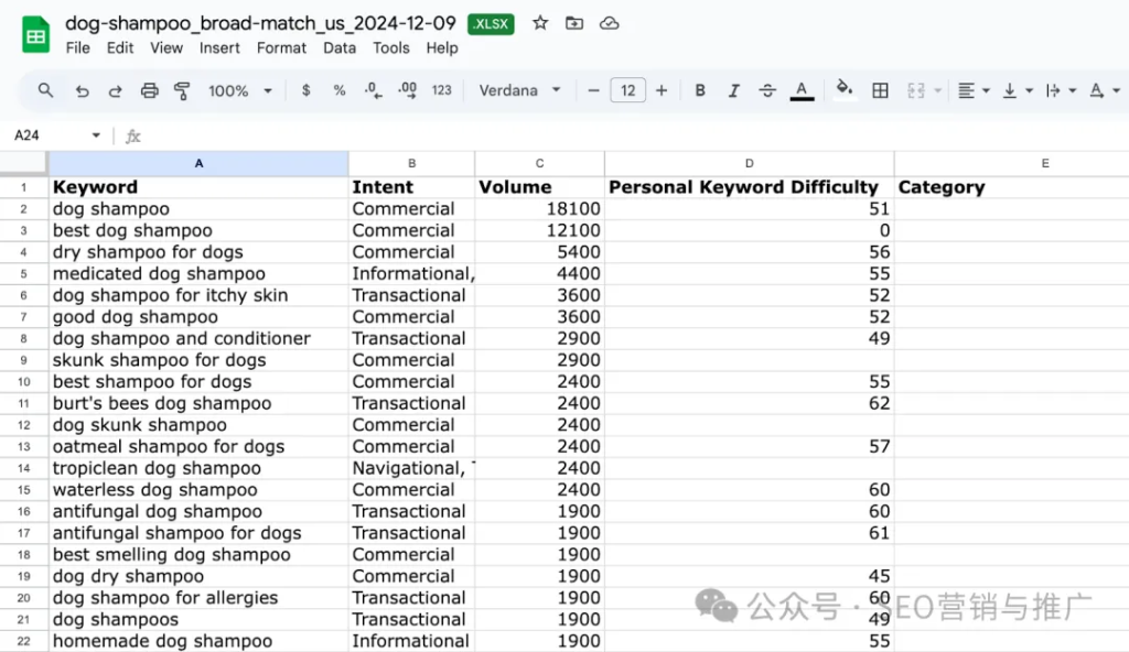 最后,打开你的关键词表格,为每一组关键词起个聚类名称,并把它写进“Category”这一列中,方便后续内容规划和页面结构设计。