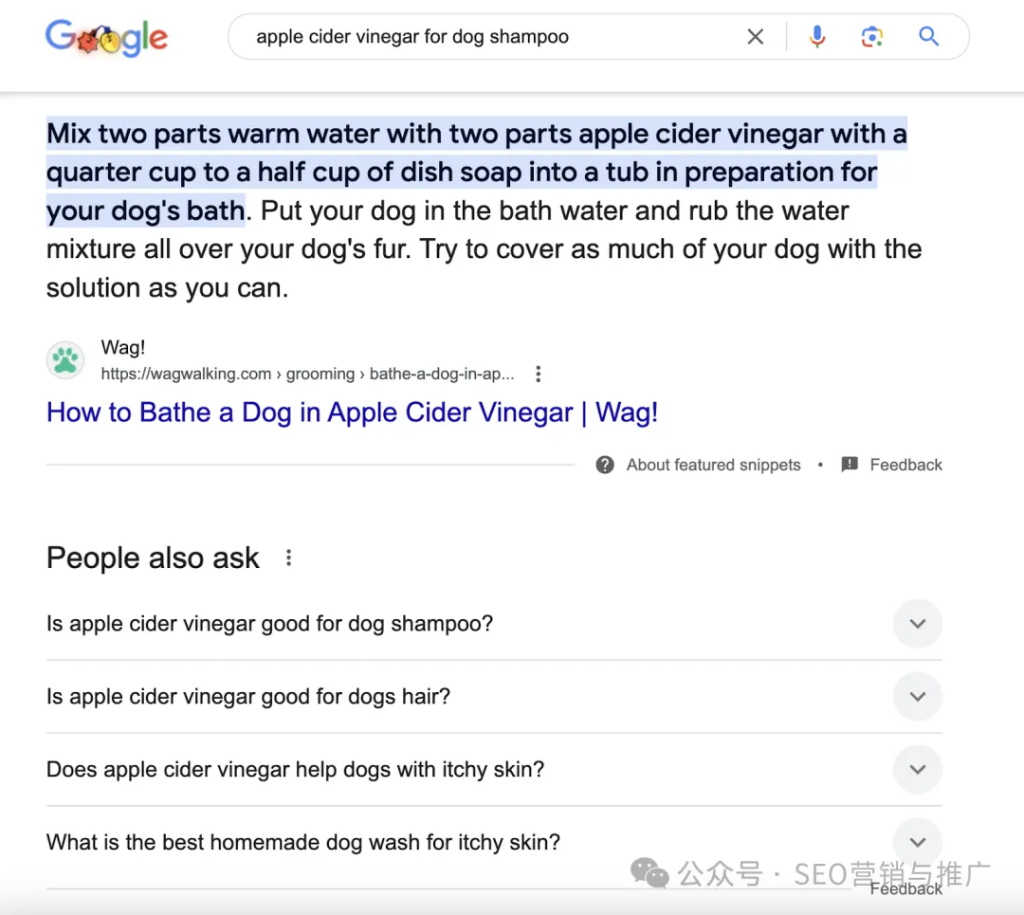 信息型(Informational):用户想了解某个话题(例如 “benefits of dog shampoo”“狗用洗发水的好处”)