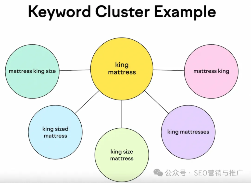 在做关键词聚类时,通常会选定一个核心关键词(也就是你最想要这个页面去排名的词),再搭配一些次级关键词(包括同义词、长尾词等)一并布局到同一个页面上。