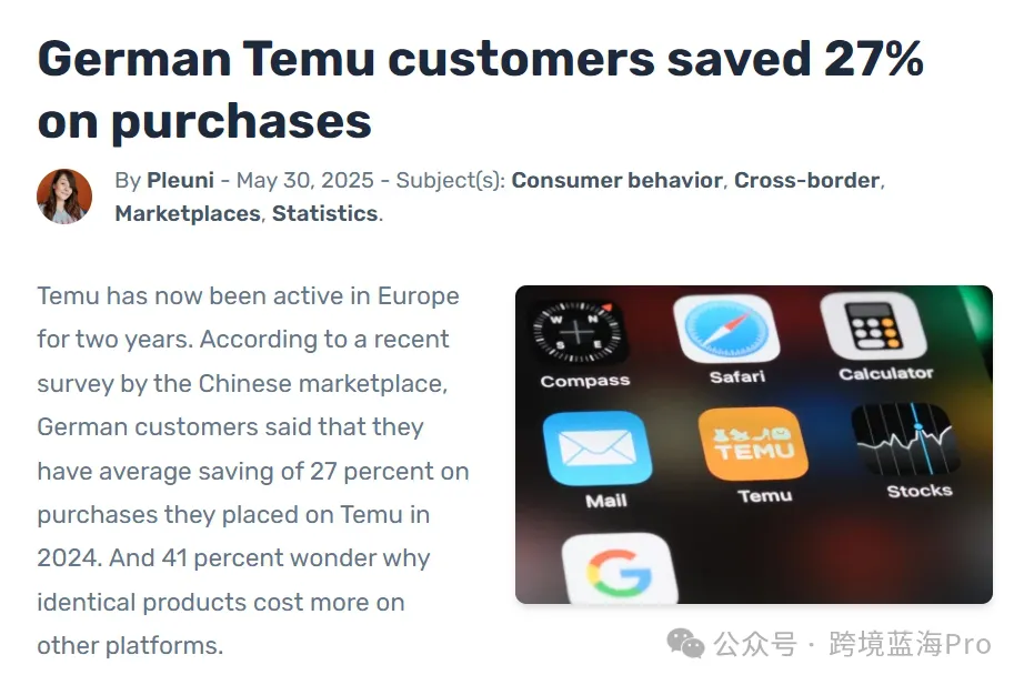 不仅如此,平均每位消费者认为通过Temu购物节省了约27%的支出,这对于一向以理性著称的德国消费者来说,是一个极具说服力的数字。这也从侧面印证了Temu在欧洲推行“高性价比”战略的有效性。