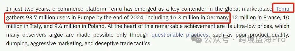 随着美国市场增速放缓,Temu已经将重心逐步转向欧洲。益普索最新调查显示:75%德国网购者认为Temu物有所值,平均每单省下27%预算。