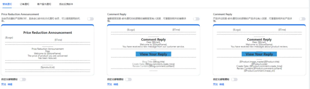 2Cshop有多种自定义邮件通知设置,大家可以把设计好的签名编辑到模板中去。